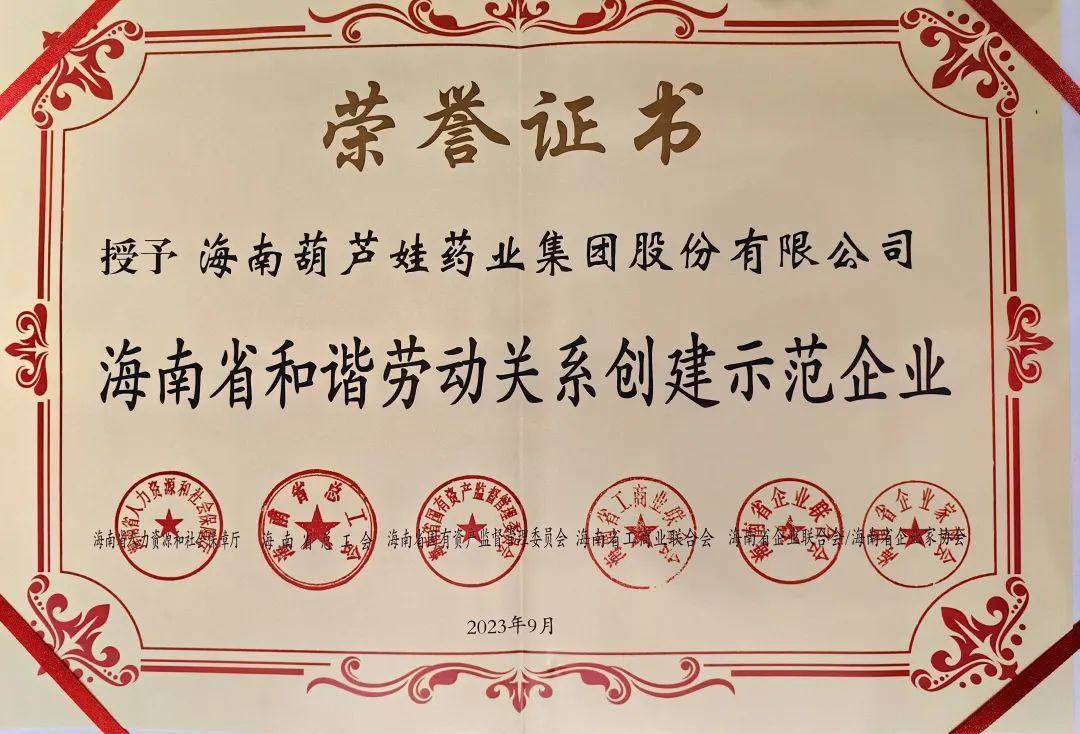 征途国际药业集团获评“海南省和谐劳动关系创建示范企业”